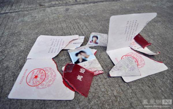 11月22日,福建泉州,洛江行政服务中心门前一男子将结婚证和离婚证都撕碎在门口。